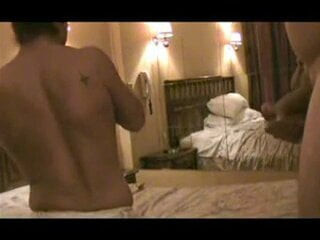 Stud recibiendo polla transexual en su culo y boca, luego toma facial