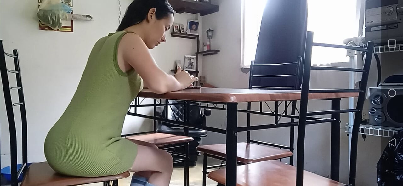 mientras el cornudo me llama, el pervertido mete su gran polla debajo de mi falda en mi estrecho agujero.